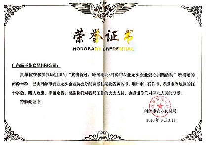 公司始終堅持“用良心打造放心食品,以責任贏得社會尊重”的理念,熱心社會公益事業,帶動農戶增產增收,積極回報社會——截止2022年底,先后為河源市新人民醫院、河源職業技術學院教學樓、東源縣東江中學、東源縣燈塔中學建設、河源“6.20”洪災,汶川“5.12大地震”、“6.30廣東扶貧濟困日”等各項公益事業捐款捐物達7000多萬元,先后資助600名優秀貧困學子完成學業,累計安排1000多名下崗工人和退伍軍人再就業,以“公司+基地+農戶”的形式直接帶動10000多戶農戶增產增收,各種善舉贏得了社會各界的高度好評。